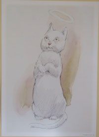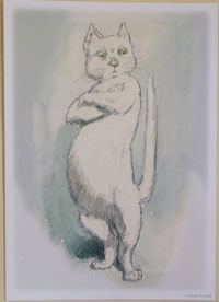 spare time Norman delighted in drawing his cats in various positions — posing,